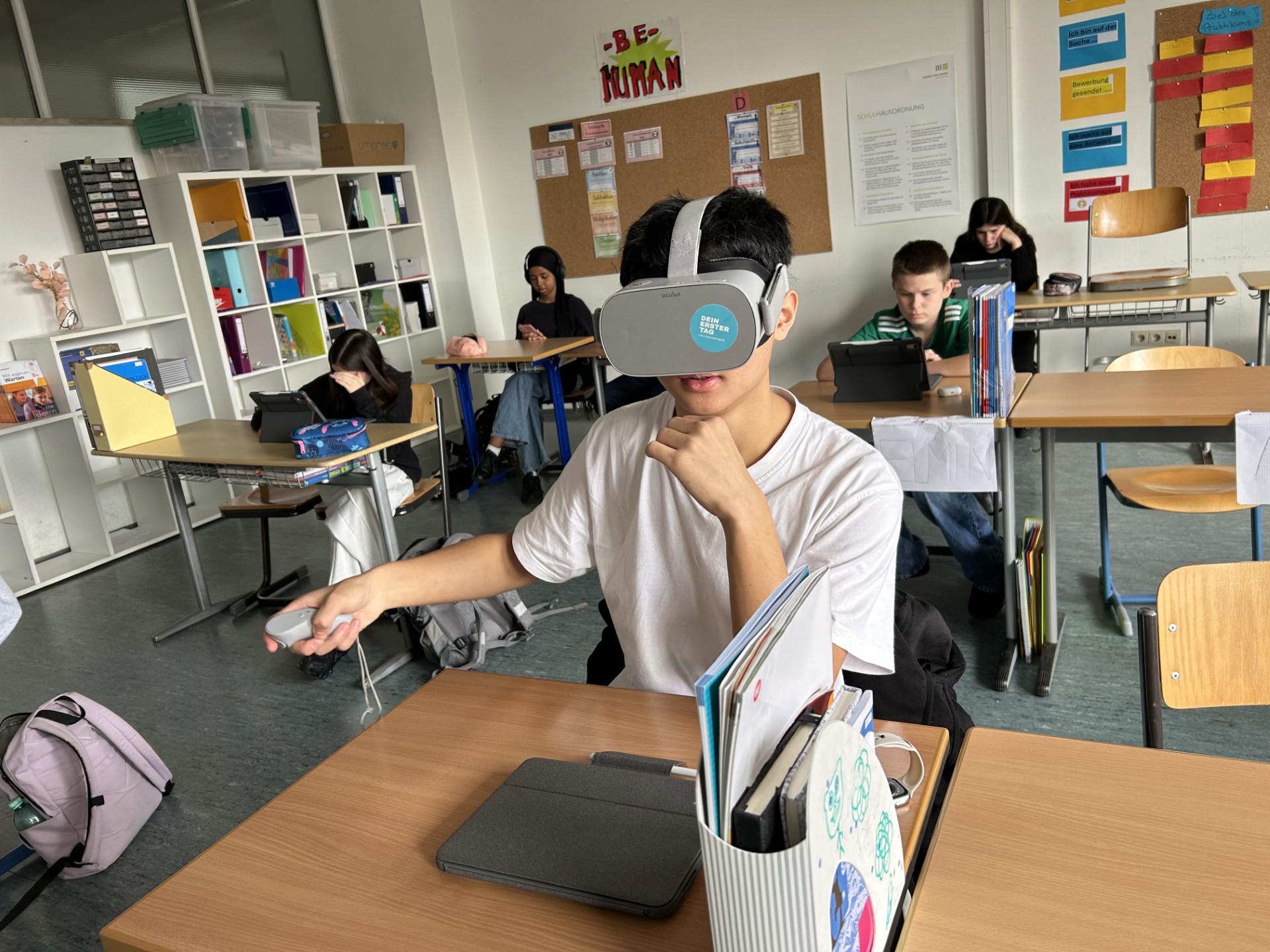 Ein Highlight dieser Stunde waren zweifellos die VR-Brillen. Durch die virtuelle Realität konnten die Schüler in verschiedene Berufswelten eintauchen, als wären sie tatsächlich vor Ort. Sie konnten die Arbeitsumgebung, typische Aufgaben und sogar die Herausforderungen der jeweiligen Berufe hautnah erleben. Das ist bei einer herkömmlichen Betriebserkundung oft nicht möglich.