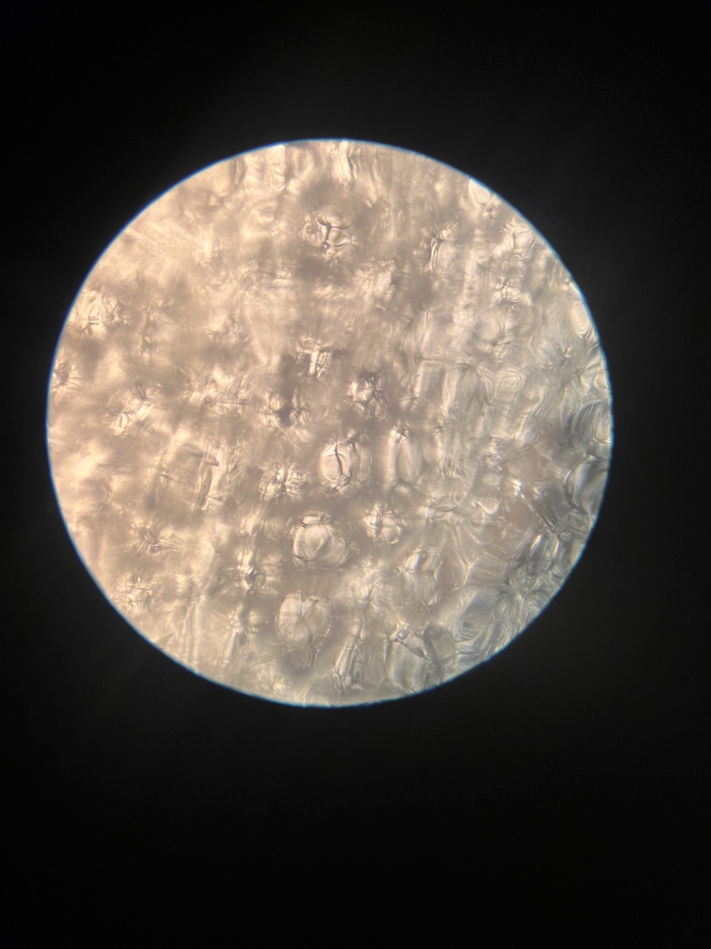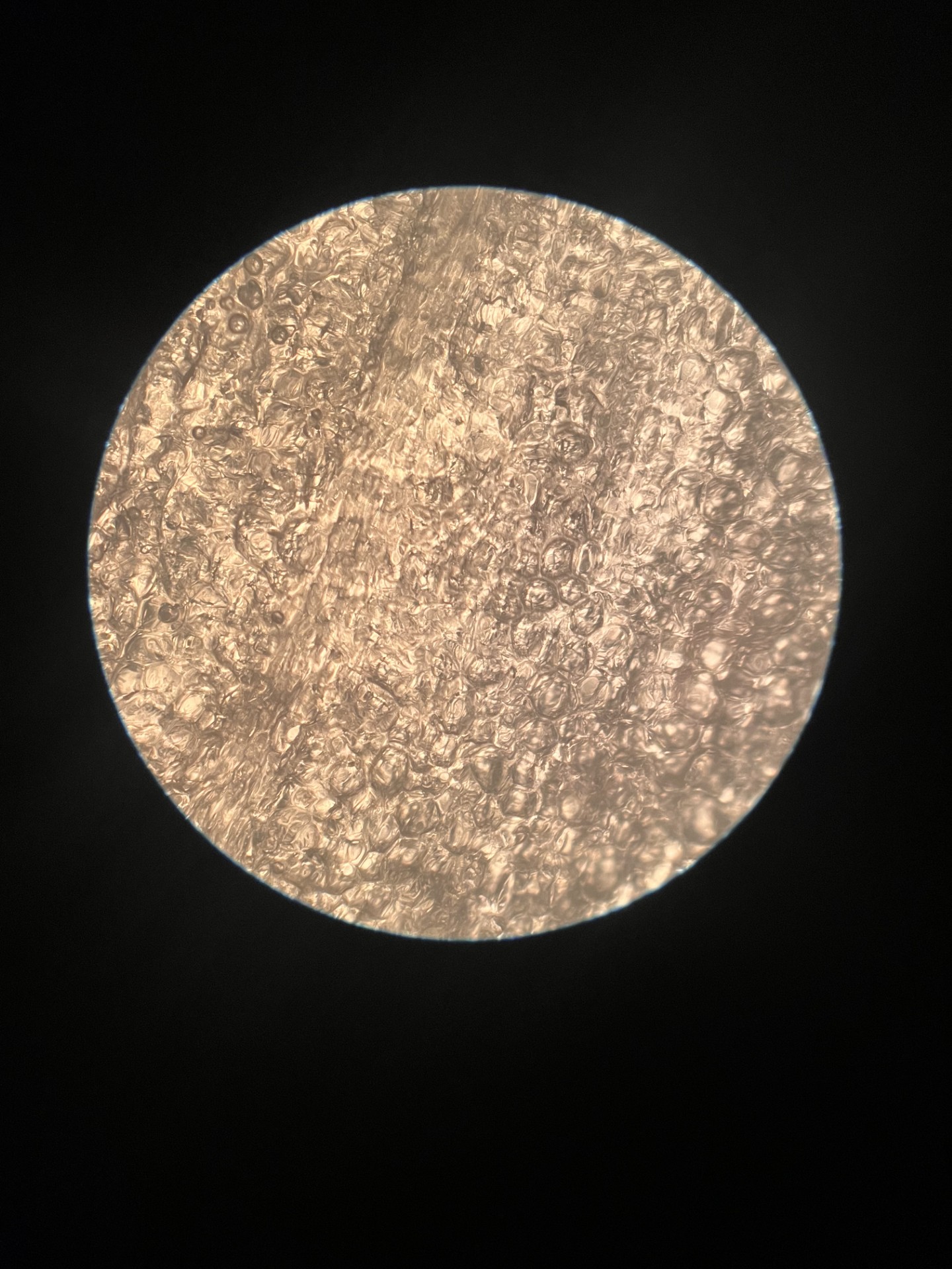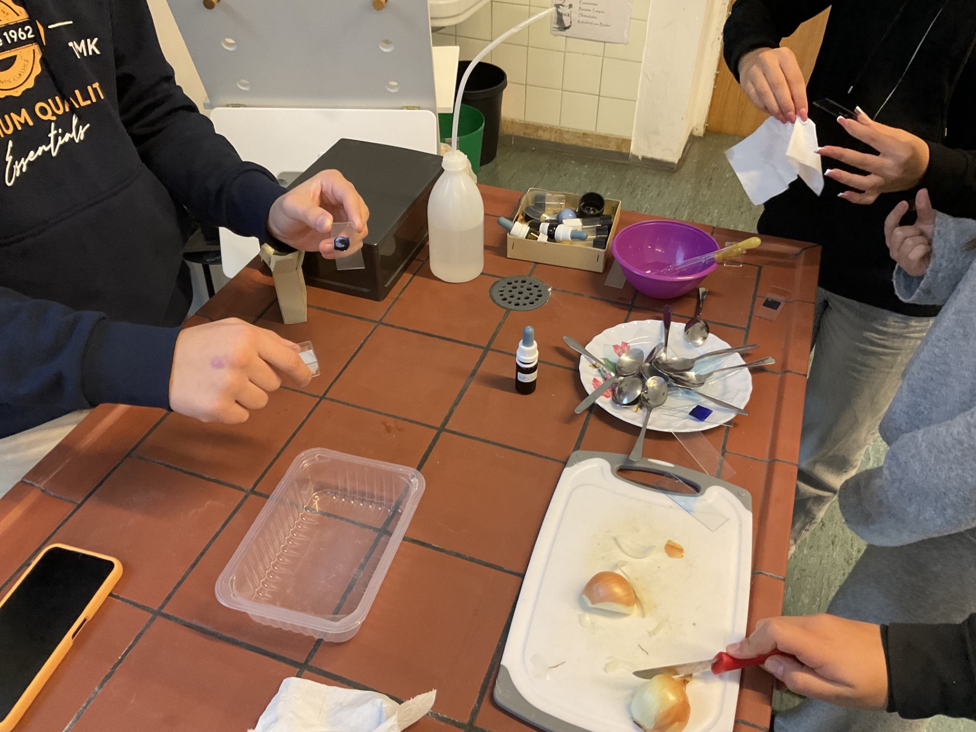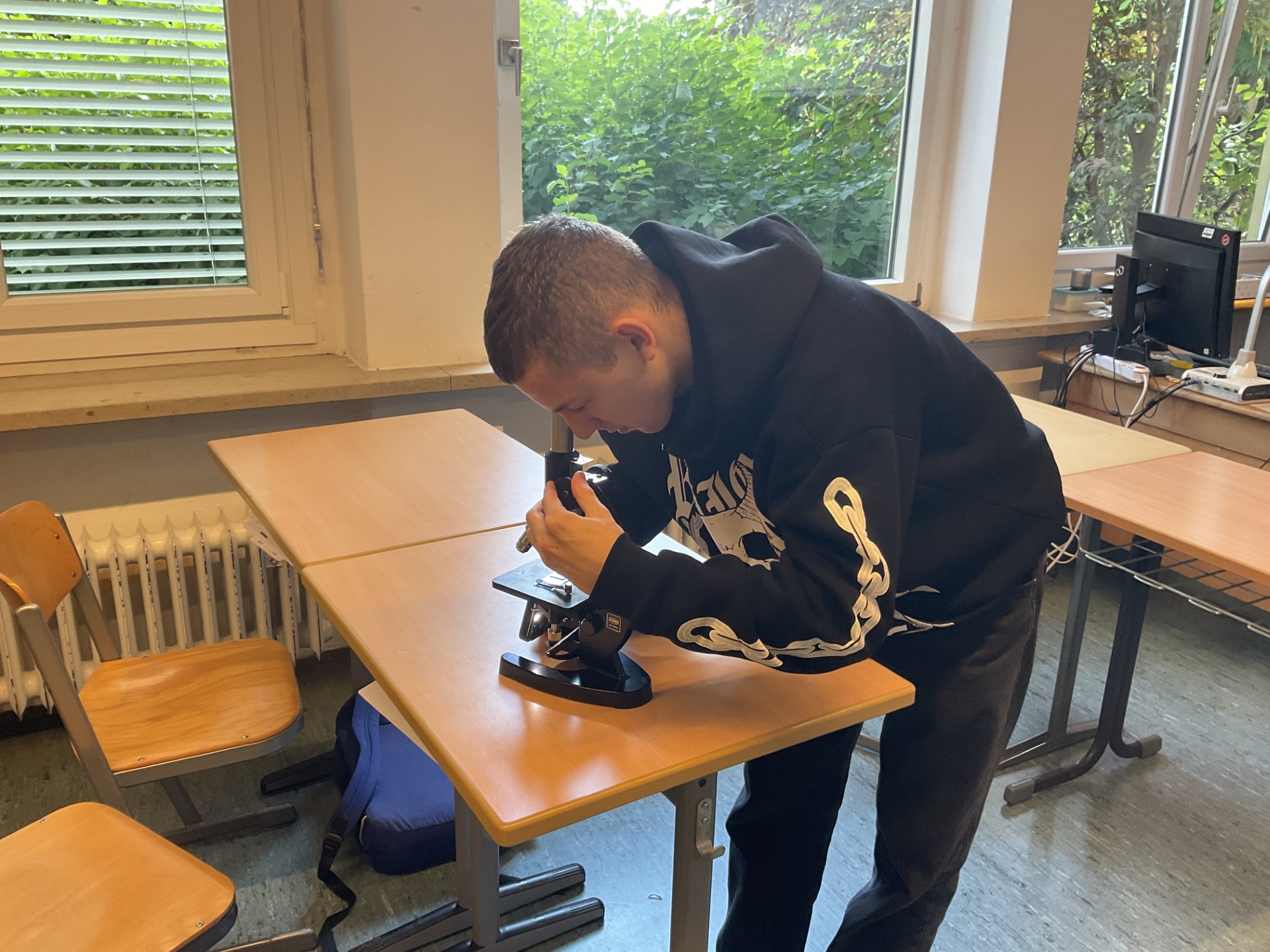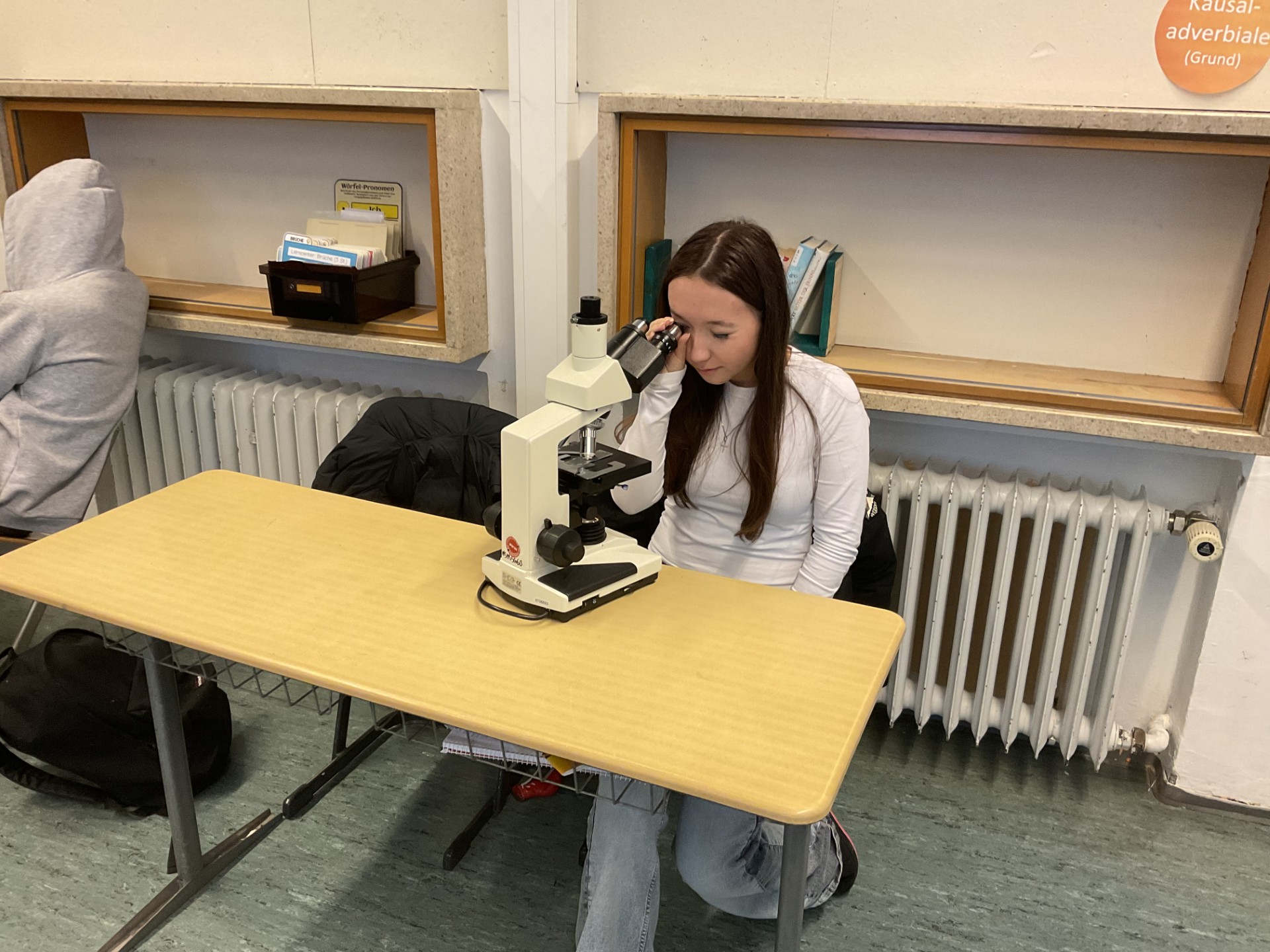 Mit dem Mikroskop haben wir letzte Woche unsere eigenen Haarzellen untersucht – eine spannende Erfahrung, die den Blick auf uns selbst wortwörtlich vergrößert hat. Heute ging es weiter mit Zellen der Mundschleimhaut, die wir durch sanftes Abstreifen gewinnen konnten. Zum Abschluss durfte auch der „Klassiker“ nicht fehlen: die Zwiebelhaut. An ihr sind die Zellstrukturen besonders deutlich zu erkennen.